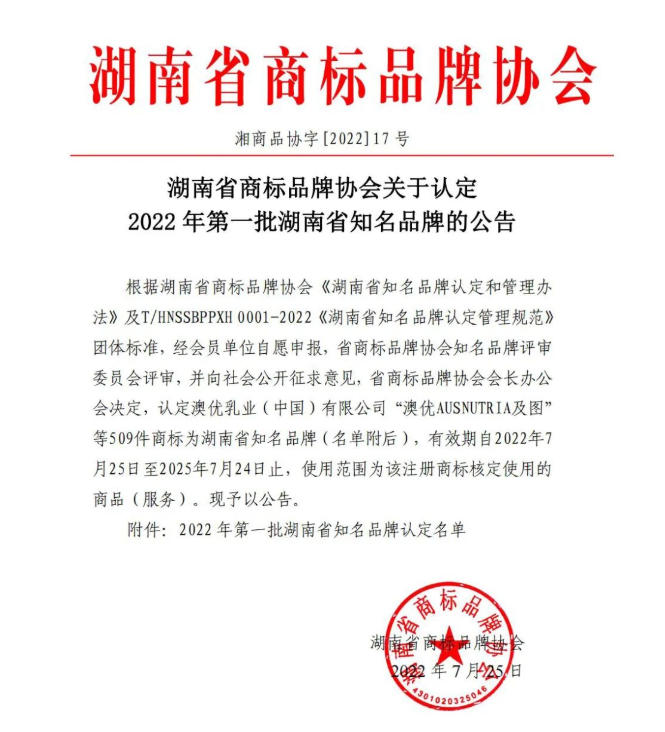 2022年7月25日,经湖南省商标品牌协会认定,AB钱包官网智通成功入选《湖南省知名品牌》。